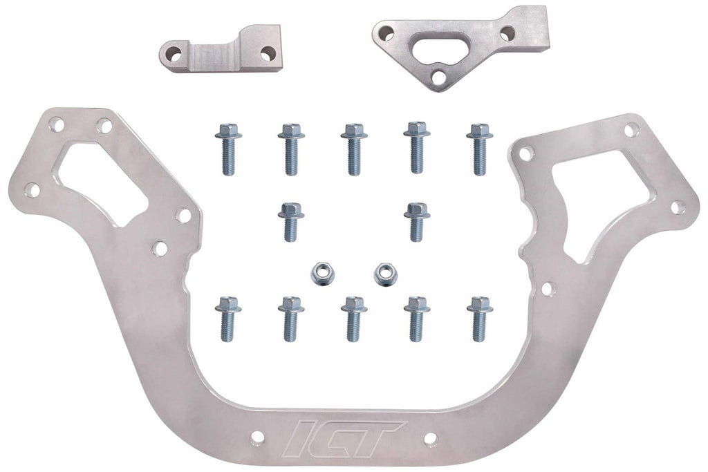 ICT Billet front motor plates are available for many popular engine blocks. Racers need the reinforcement between the engine and the two sides of the chassis. The plates help to prevent twist and vibration—and can boost your reaction time on the street or the track. Most of the aluminum front motor plates are 1/4 in. thick, measuring 1 ft. by 3 ft. And while they're designed with cutouts to accommodate specific blocks, you can also trim the plates to precisely fit your application, whether it's a classic musclecar or a late-model V8. Solidify the chassis/motor connection with ICT Billet.Brand: ICT Billet