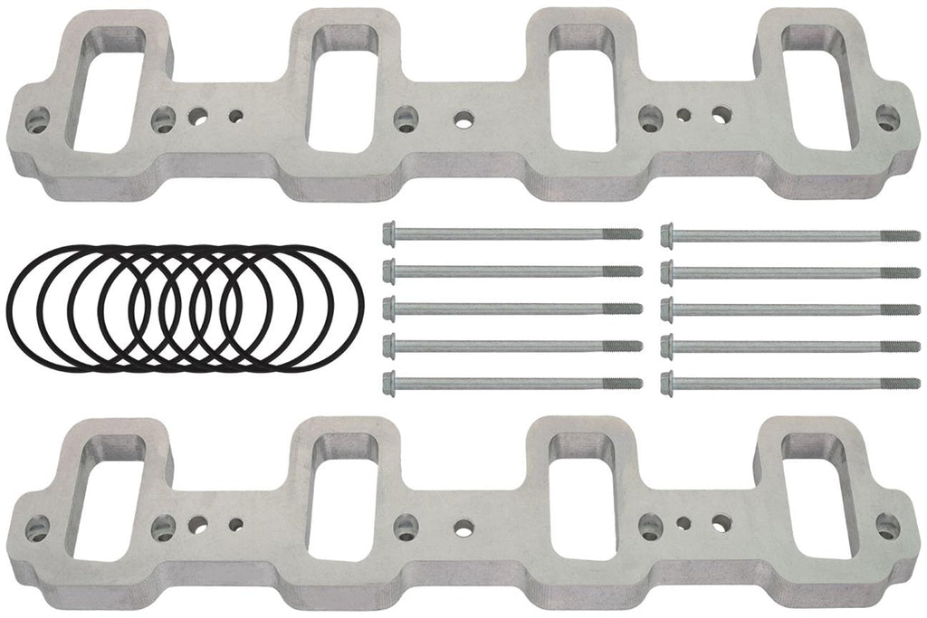 ICT Billet intake manifold spacers are made from aerospace-grade 6061-T6 aluminum. They fit cathedral port heads and will work with rectangular port intakes, superchargers, or blowers. ICT spacers raise the manifold approximately 1/2 in. and include riser plates, O-ring seals, and flange bolts. Order the kit recommended for your year/make and engine application.Brand: ICT Billet