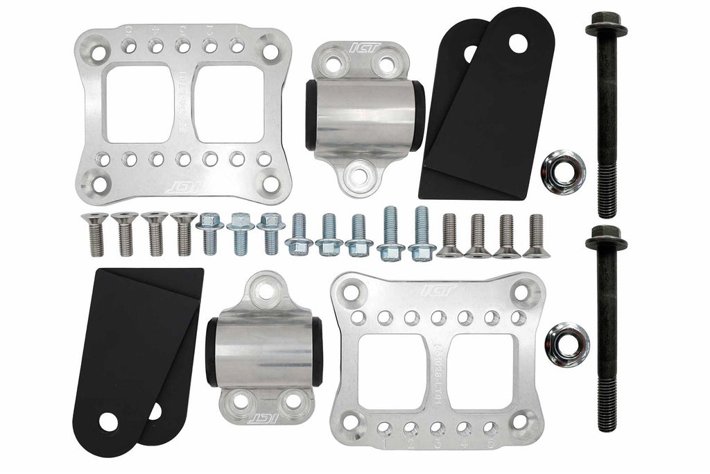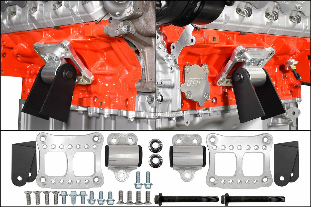 ICT Billet motor mount adapters are beautiful engine swap brackets. They are manufactured from aerospace grade billet aluminum, they offer adjustable mounting positions, from stock bellhousing location to 2.25 in. forward. Each kit will include plates and bolts. Mount your swap securely with the strength and style of ICT Billet motor mount adapters.Brand: ICT Billet