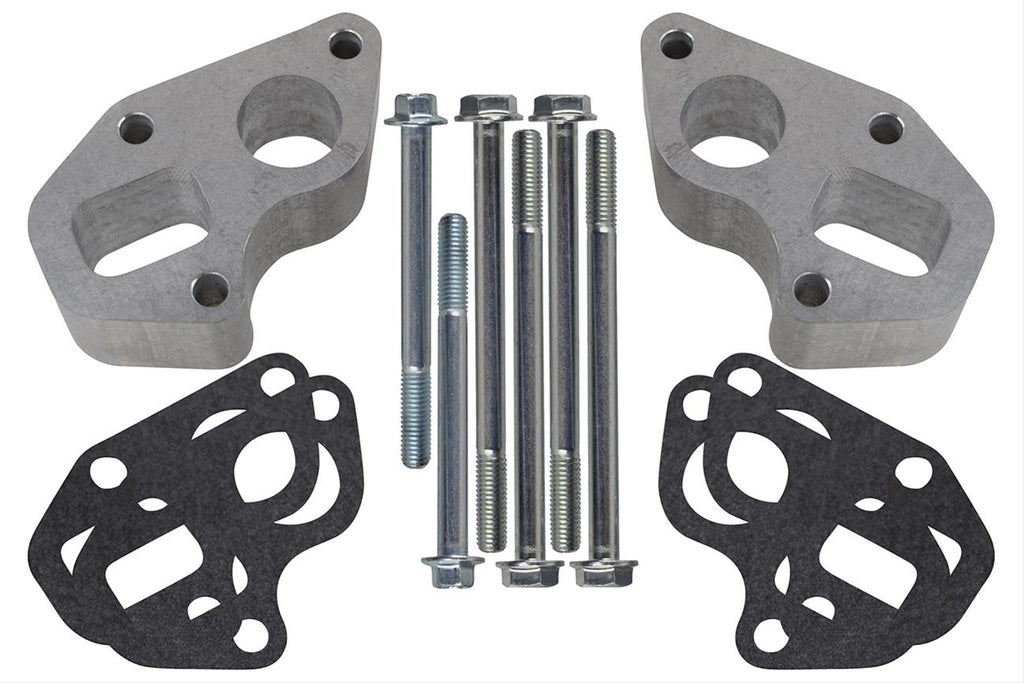 ICT Billet water pump spacer kits are available in several thicknesses for LS Series engines. They can be used to install truck-style accessories (power steering, alternator, A/C compressor, etc.) while using factory LS3 or LS1 water pumps. Made from aerospace-grade billet aluminum, they feature a natural aluminum finish and include bolts, a steam port plug in one of the spacers, and reusable O-ring seals.Brand: ICT Billet