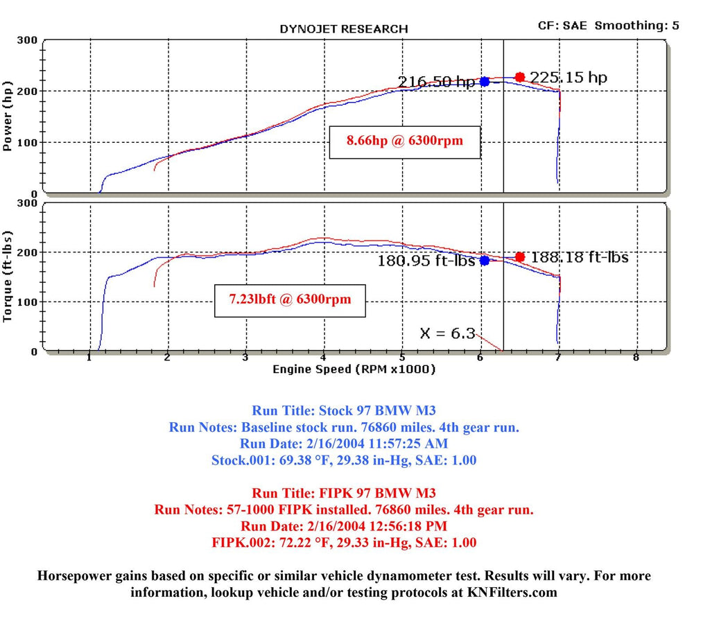 The K&N 57-1000 FIPK air intake system replaces the restrictive factory air filter and air intake housing in some BMW models. K&N intakes are designed to dramatically reduce intake restriction as they smooth and straighten air flow. This allows your BMW’s engine to inhale a larger amount of air than the factory air filter assembly. More air means more usable power and acceleration throughout the engine’s RPM range. The 57-1000 air intake comes with a chrome topped K&N high-flow air filter and a heat shield that installs into the previous air box space. Air is directed through an aerodynamically engineered intake tube into the engine’s throttle body for a guaranteed power gain. The air intake assembly accommodates the factory mass air sensor, speed control and throttle body thermostat (on certain vehicles). The oversized cone shaped air filter can be used for up to 100,000 miles before servicing is needed depending on driving conditions. This air intake is relatively easy to install usually in 90 minutes or less using the existing factory mounting points. The tools needed are a couple of screwdrivers, a socket set and one 10 millimeter wrench. K&N 57 Series FIPK's are street legal in all 50 US states and come with K&N's Million Mile Limited Warranty.