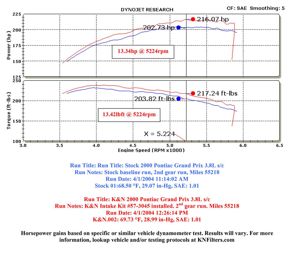 The K&N 57-3045 FIPK air intake system replaces your vehicle’s restrictive factory air filter and air intake housing. K&N intakes are designed to dramatically reduce intake restriction as they smooth and straighten air flow. This allows your engine to inhale a larger amount of air than the factory air filter assembly. More air means more usable power and acceleration throughout the engine’s RPM range. The 57-3045 air intake comes with a chrome topped K&N high-flow air filter and a heat shield that installs into the previous air box space. Air is directed through an aerodynamically engineered intake tube into the engine’s throttle body for a guaranteed power gain. The air intake system accommodates the factory air temperature sensor and engine processor. The oversized, oval tapered cone-shaped air filter can be used for up to 100,000 miles before servicing is needed depending on driving conditions. This air intake is relatively easy to install usually in 90 minutes or less using the existing factory mounting points. The tools needed are a screwdriver, socket set and a couple of wrenches. K&N 57 Series FIPK's are street legal in all 50 US states and come with K&N's Million Mile Limited Warranty.