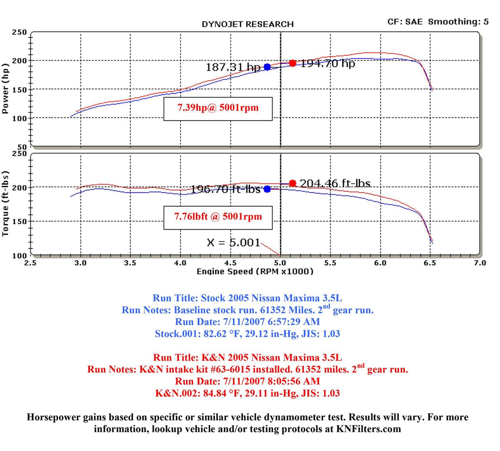 The K&N 57-6015 FIPK air intake system replaces your vehicle’s restrictive factory air filter and air intake housing. K&N intakes are designed to dramatically reduce intake restriction as they smooth and straighten air flow. This allows your engine to inhale a larger amount of air than the factory air filter assembly. More air means more usable power and acceleration throughout the engine’s RPM range. The 57-6015 air intake comes with a chrome topped K&N high-flow air filter and a heat shield that installs into the previous air box space. Air is directed through an aerodynamically engineered intake tube into the engine’s throttle body for a guaranteed power gain. The tube accommodates the factory mass air sensor and a replacement silicon crank case vent hose. The oversized cone shaped air filter can be used for up to 100,000 miles before servicing is needed depending on driving conditions. This air intake is relatively easy to install usually in 90 minutes or less using the existing factory mounting points. The tools needed are a screwdriver, socket set, pliers and several wrenches. K&N 57 Series FIPK's are street legal in all 50 US states and come with K&N's Million Mile Limited Warranty.
