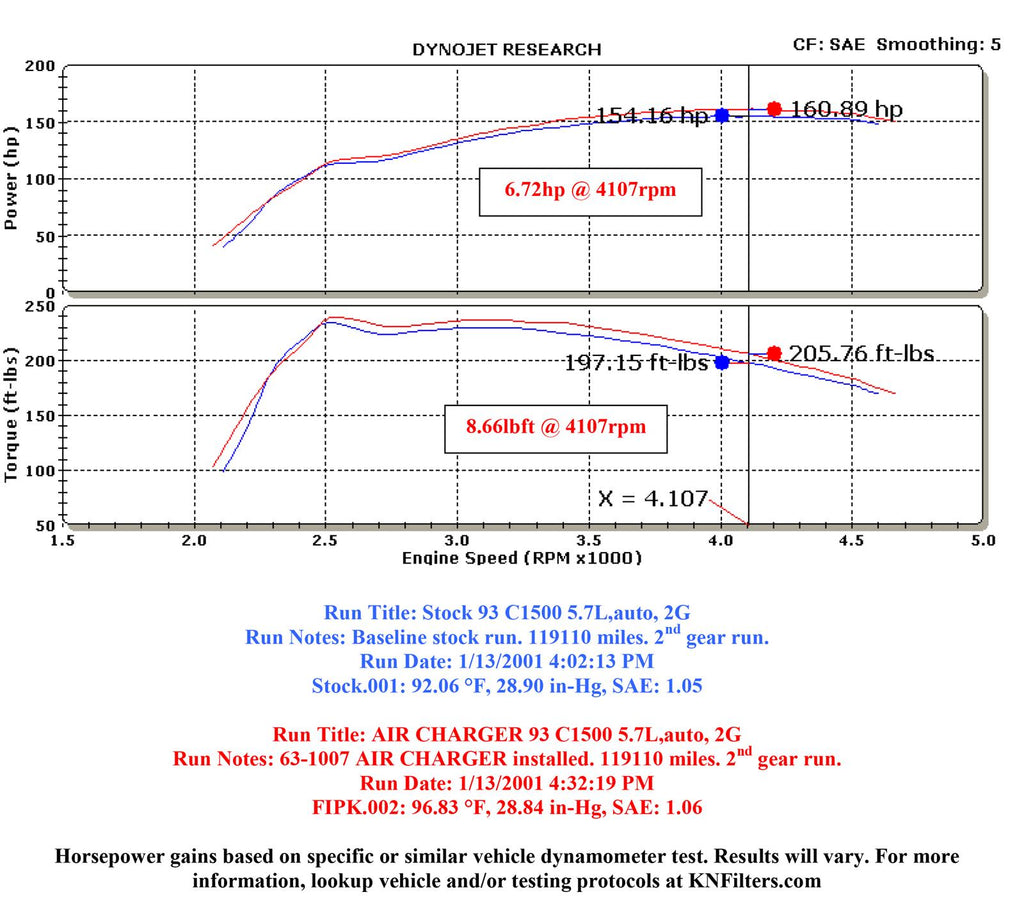 The K&N AirCharger 63-1007-1 air intake system replaces your vehicle’s restrictive factory air filter and air intake housing. K&N intakes are designed to dramatically reduce intake restriction as they smooth and straighten air flow. This allows your vehicle’s engine to inhale a larger amount of air than the factory air filter assembly. More air means more usable power and acceleration throughout the engine’s RPM range. The 63-1007-1 air intake places a round K&N high-flow air filter directly on top of the throttle body allowing large volumes of air to be pulled into the engine delivering a guaranteed gain in horse power. The oversized air filter is capped with an impressive chrome lid for added visual appeal under the hood. This air intake is relatively easy to install using commonly available tools. This air intake cannot be sold in California. It is not legal for use in California or other states adopting California emission standards.