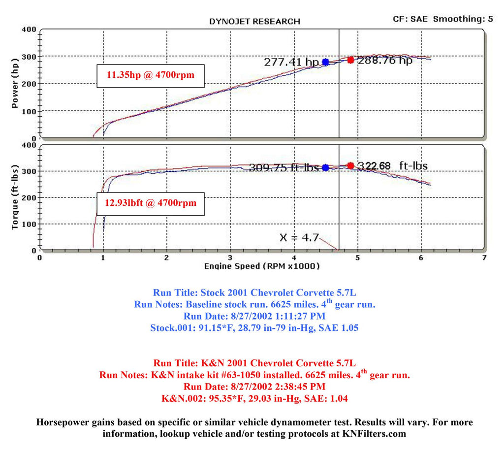 The K&N AirCharger 63-1050 air intake system replaces the restrictive factory air filter and air intake housing in some Chevrolet Corvette Z06 models. K&N intakes are designed to dramatically reduce intake restriction as they smooth and straighten air flow. This allows your Corvette Z06’s engine to inhale a larger amount of air than the factory air filter assembly. More air means more usable power and acceleration throughout the engine’s RPM range. The 63-1050 air intake comes with a vented, carbon fiber topped K&N high-flow air filter that directs air into the custom molded intake for a guaranteed power gain. The oversized air filter can be used for up to 100,000 miles before servicing is needed depending on driving conditions. This air intake cannot be sold in California. It is not legal for use in California or other states adopting California emission standards.