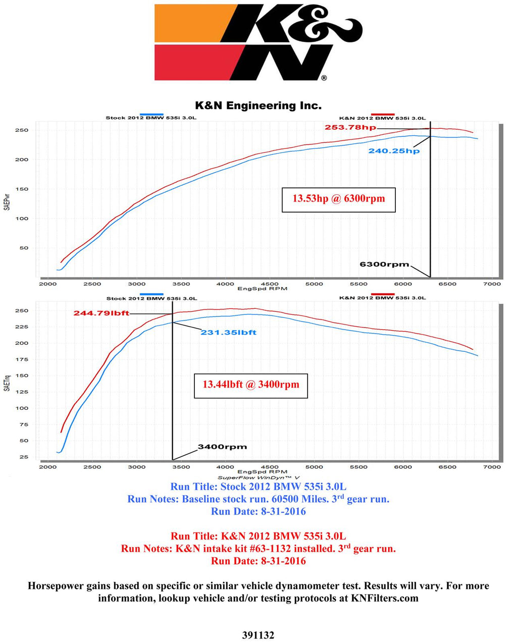 The K&N 63-1132 Air Intake fits some BMW 535i, BMW 535i GT, BMW 535i GT xDrive, and BMW 535i xDrive models. See vehicle applications link for details.