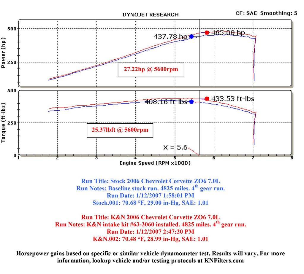 The K&N 63-3060-1 Air Intake fits some Chevrolet Corvette Z06 models. See vehicle applications link for details.