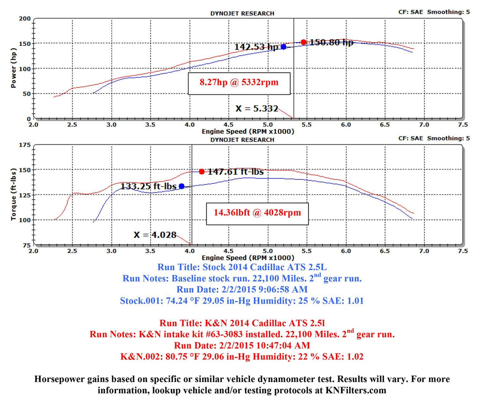 The K&N 63-3083 AirCharger air intake system replaces the restrictive factory air filter and air intake housing on some Cadillac ATS models. K&N air intakes are designed to dramatically reduce air intake restriction as well as smooth and straighten air flow. This allows your engine to inhale a larger amount of air than the factory air filter assembly. More air means more usable power and acceleration throughout the engine’s RPM range. The air intake comes with a chrome topped K&N high-flow air filter and a heat shield that installs into the original air box space. Air is directed through an aerodynamically engineered intake tube into the engine’s throttle body for a guaranteed power gain. The tube accommodates the factory mass air sensor and crank case vent hose while the heat shield adapts the secondary air hose (where equipped) to a secondary air filter as well. The oversized cone shaped air filter can be used for up to 100,000 miles before servicing is needed depending on driving conditions. This air intake is relatively easy to install, usually in 90 minutes or less using your vehicle’s existing factory mounting points. The tools needed are a screwdriver, ratchet set and several wrenches.