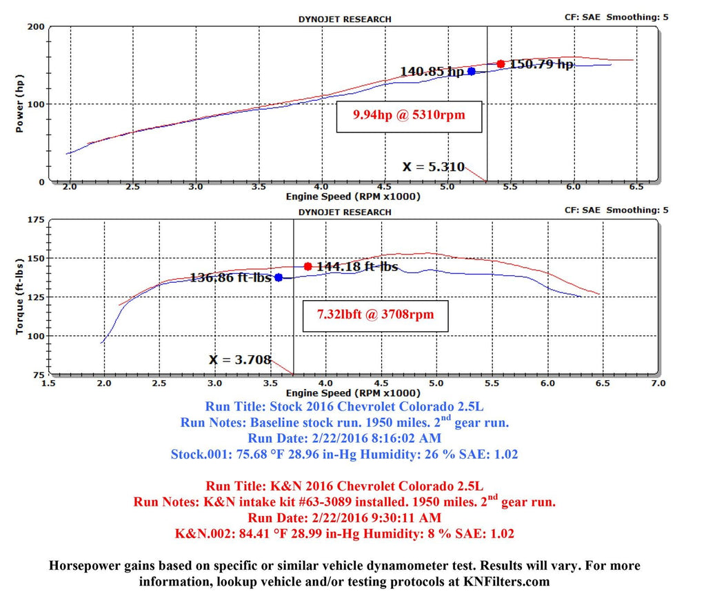 The K&N 63-3089 AirCharger air intake system replaces the restrictive factory air filter and air intake housing on specific Chevrolet Colorado and GMC Canyon models. K&N air intakes are designed to dramatically reduce air intake restriction as well as smooth and straighten air flow. This allows your engine to inhale a larger amount of air than the factory air filter assembly. More air means more usable power and acceleration throughout the engine’s RPM range. The air intake comes with a chrome topped K&N high-flow air filter and a heat shield that installs into the original air box space. Air is directed through an aerodynamically engineered intake tube into the engine’s throttle body for a guaranteed power gain. The tube accommodates the factory mass air sensor and crank case vent hose. The oversized cone shaped air filter can be used for up to 100,000 miles before servicing is needed depending on driving conditions. This air intake is relatively easy to install, usually in 90 minutes or less using your vehicle’s existing factory mounting points. The tools needed are a ratchet set and several wrenches.