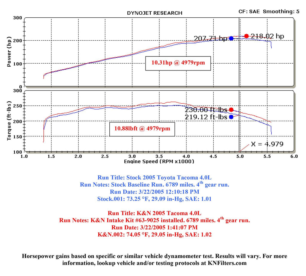 The K&N AirCharger 63-9025 air intake system replaces the restrictive factory air filter and air intake housing in some Toyota Tacoma models. K&N intakes are designed to dramatically reduce intake restriction as they smooth and straighten air flow. This allows your Tacoma’s engine to inhale a larger amount of air than the factory air filter assembly. More air means more usable power and acceleration throughout the engine’s RPM range. The 63-9025 air intake comes with a chrome topped K&N high-flow air filter and a heat shield that directs cooler, denser air through a custom molded intake tube into the engine’s throttle body for a guaranteed power gain. The oversized air filter can be used for up to 100,000 miles before servicing is needed depending on driving conditions. This air intake is relatively easy to install requiring only two screwdrivers, a socket set and several wrenches. This air intake cannot be sold in California. It is not legal for use in California or other states adopting California emission standards.