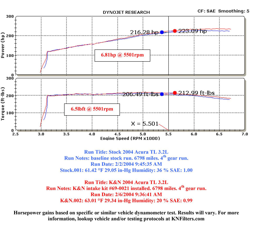 The K&N 69-0021TB Typhoon cold-air intake system is a free-flowing, mandrel-bent aluminum tube air induction system designed to fit some Acura TL models. The restrictive factory air filter and air intake housing are replaced by the K&N Typhoon cold-air intake which is designed to pull in relatively cooler air and dramatically reduce air flow restriction by smoothing and straightening air flow. This allows your engine to inhale a larger amount of denser air than the factory air intake. More air means more usable power and acceleration throughout the engine’s RPM range. Air is directed through the cold air tube and into a short ram intake tube that leads into the engine’s throttle body for a guaranteed power gain. The oversized cone shaped air filter comes with a water repellent DryCharger filter wrap to protect the filter from moisture. The air filter can be used for up to 100,000 miles before servicing is needed depending on driving conditions. This air intake is relatively easy to install usually in 90 minutes or less. The tools needed are a screwdriver, ratchet set and pliers. Some Typhoon air intakes are not legal for sale or use in California and other states adopting California emission standards while others are CARB exempt and 50 state legal. Check the K&N catalog or website for vehicle applications and specific CARB status for each vehicle and air intake.