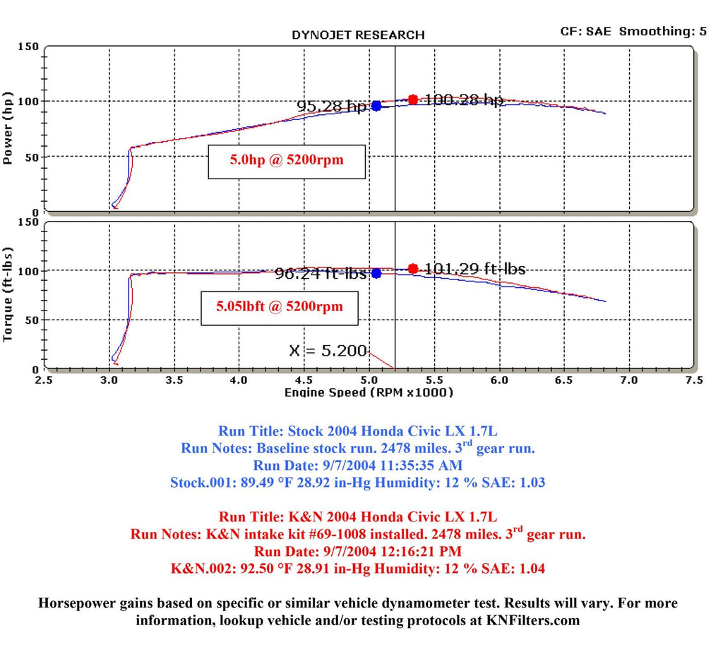 The K&N 69-1008TS Air Intake fits some Acura EL, Honda Civic DX, Honda Civic EX, Honda Civic LX, Honda Civic Si, Honda Civic Value Package, and Honda Civic VI models. See vehicle applications link for details.