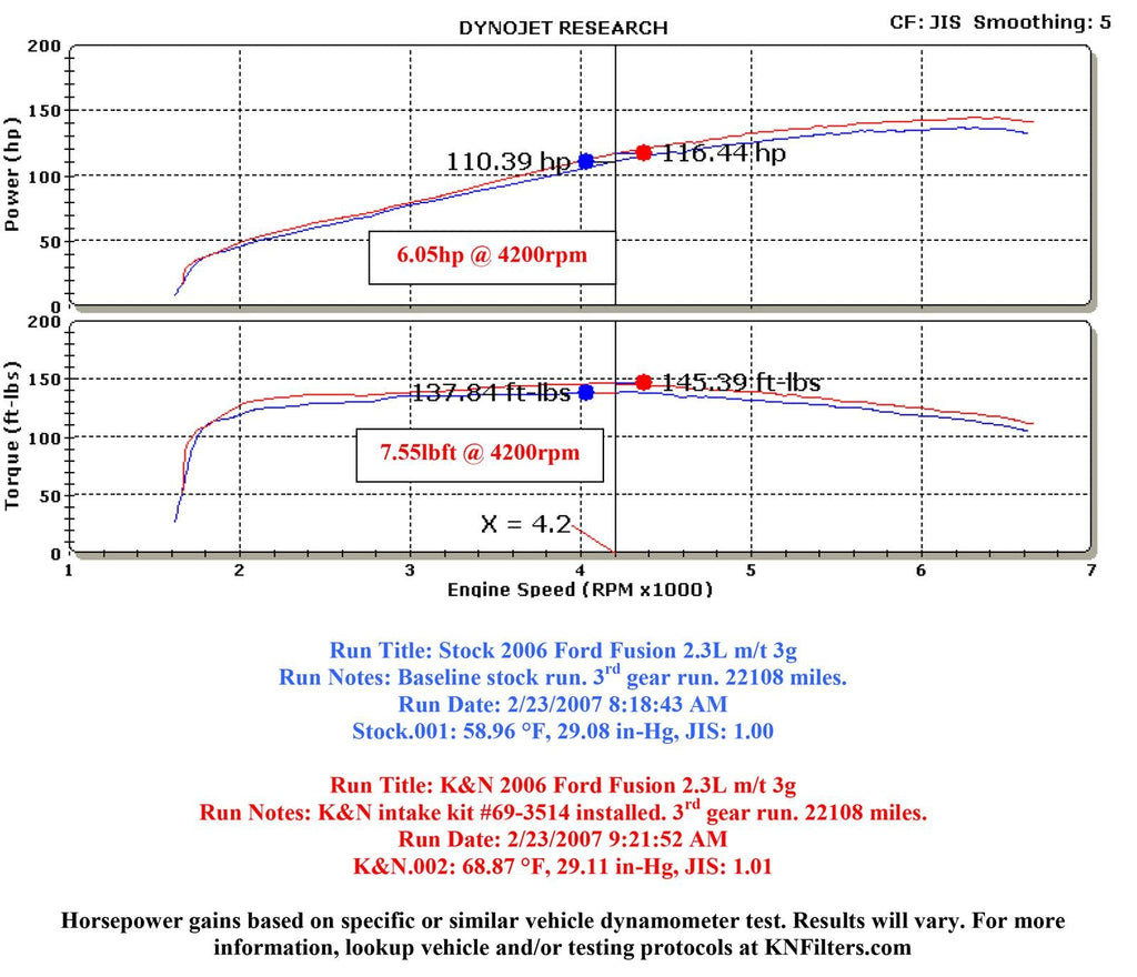 The K&N 69-3514TTK Typhoon air intake system is a free-flowing, mandrel-bent aluminum tube air induction system designed to fit some Ford Fusion models. The restrictive factory air filter and air intake housing are replaced by the K&N Typhoon air intake which is designed to dramatically reduce air flow restriction as it smoothes and straightens air flow. This allows your engine to inhale a larger amount of air than the factory air intake. More air means more usable power and acceleration throughout the engine’s RPM range. The 69-3514TTK air intake comes with a black rubber topped K&N high-flow air filter and a heat shield that installs into the previous air box space. Air is directed through the intake tube into the engine’s throttle body for a guaranteed power gain. The intake tube has an attractive black powder-coat finish that's made to last and it accommodates the factory mass air sensor, crank case vent hose and air injection hose where equipped. The oversized cone shaped air filter can be used for up to 100,000 miles before servicing is needed depending on driving conditions. This air intake is relatively easy to install usually in 90 minutes or less using existing factory mounting points. The tools needed are a couple of screwdrivers, a ratchet set and some wrenches. Some Typhoon air intakes are not legal for sale or use in California and other states adopting California emission standards while others are CARB exempt and 50 state legal. Check the K&N catalog or website for vehicle applications and specific CARB status for each vehicle and air intake.