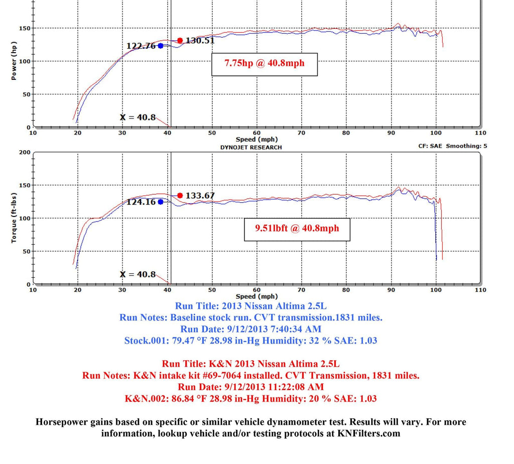 The K&N 69-7064TS Typhoon air intake system is a free-flowing, mandrel-bent aluminum tube air induction system designed to fit some Nissan Altima models. The restrictive factory air filter and air intake housing are replaced by the K&N Typhoon air intake which is designed to dramatically reduce air flow restriction as it smoothes and straightens air flow. This allows your engine to inhale a larger amount of air than the factory air intake. More air means more usable power and acceleration throughout the engine’s RPM range. The 69-7064TS air intake comes with a K&N XStream Top air filter designed for higher air flow and durability. A heat shield and fresh air duct installs into the previous air box space. Air is directed through an intake tube into the engine’s throttle body for a guaranteed power gain. The intake tube has an attractive silver powder-coat finish that's made to last and it accommodates the factory mass air sensor and crank case vent hose. The oversized cone shaped air filter can be used for up to 100,000 miles before servicing is needed depending on driving conditions. This air intake is relatively easy to install usually in 90 minutes or less using existing factory mounting points. The tools needed are a couple of screwdrivers, pliers, a ratchet set and some wrenches. Some Typhoon air intakes are not legal for sale or use in California and other states adopting California emission standards while others are CARB exempt and 50 state legal. Check the K&N catalog or website for vehicle applications and specific CARB status for each vehicle and air intake.