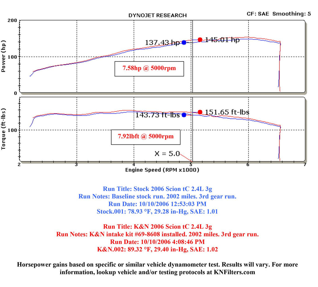 The K&N 69-8608TFK Typhoon air intake system is a free-flowing, mandrel-bent aluminum tube air induction system designed to fit some Scion TC models. The restrictive factory air filter and air intake housing are replaced by the K&N Typhoon air intake which is designed to dramatically reduce air flow restriction as it smoothes and straightens air flow. This allows your engine to inhale a larger amount of air than the factory air intake. More air means more usable power and acceleration throughout the engine’s RPM range. The 69-8608TFK air intake comes with a K&N high-flow air filter and filter cage that installs into the stock upper air cleaner cover. Air is directed through the intake tube into the engine’s throttle body for a guaranteed power gain. The intake tube has an attractive black powder-coat finish that's made to last and it accommodates the factory mass air sensor, vacuum switching valve and crank case vent hose. The custom rectangular air filter can be used for up to 100,000 miles before servicing is needed depending on driving conditions. This air intake is relatively easy to install usually in 90 minutes or less using existing factory mounting points. The tools needed are a couple of screwdrivers, needle nose pliers, a ratchet set and some wrenches. Some Typhoon air intakes are not legal for sale or use in California and other states adopting California emission standards while others are CARB exempt and 50 state legal. Check the K&N catalog or website for vehicle applications and specific CARB status for each vehicle and air intake.
