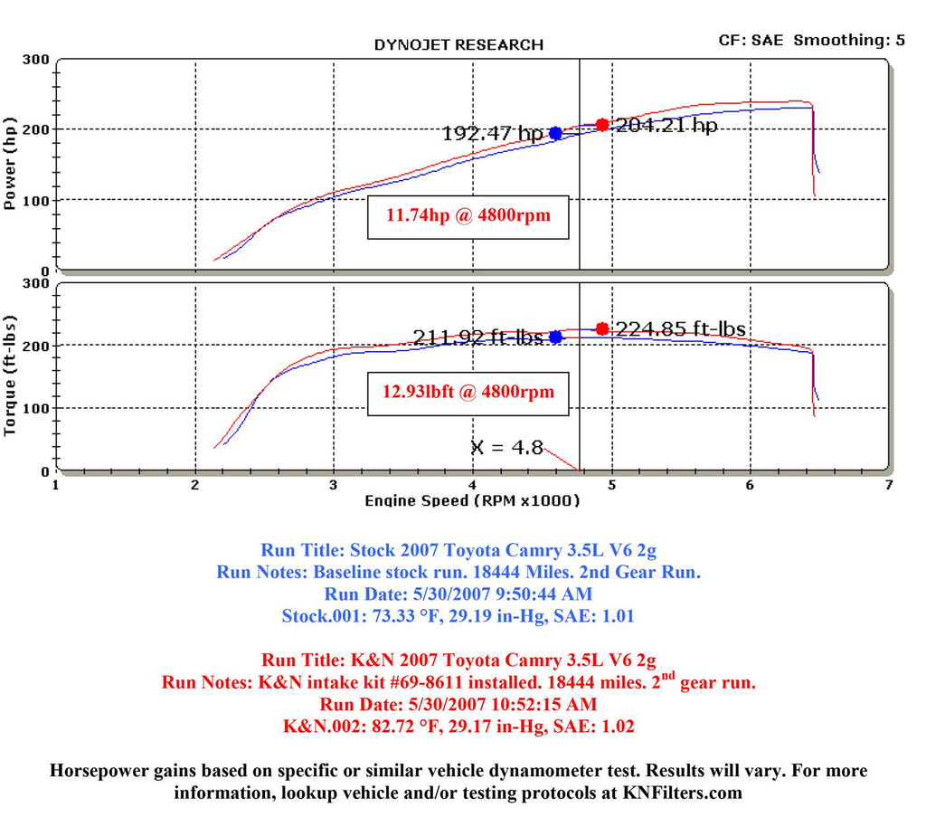 The K&N 69-8611TS Typhoon air intake system is a free-flowing, mandrel-bent aluminum tube air induction system designed to fit some Toyota Venza and Camry models. The restrictive factory air filter and air intake housing are replaced by the K&N Typhoon air intake which is designed to dramatically reduce air flow restriction as it smoothes and straightens air flow. This allows your engine to inhale a larger amount of air than the factory air intake. More air means more usable power and acceleration throughout the engine’s RPM range. The 69-8611TS air intake comes with a black rubber topped K&N high-flow air filter and a heat shield that installs into the previous air box space. Air is directed through the intake tube into the engine’s throttle body for a guaranteed power gain. The intake tube has an attractive silver powder-coat finish that's made to last and it accommodates the factory mass air sensor, crank case vent hose and two replacement silicone vacuum lines. The oversized cone shaped air filter can be used for up to 100,000 miles before servicing is needed depending on driving conditions. This air intake is relatively easy to install usually in 90 minutes or less using existing factory mounting points. The tools needed are a couple of screwdrivers, a ratchet set and some wrenches. Some Typhoon air intakes are not legal for sale or use in California and other states adopting California emission standards while others are CARB exempt and 50 state legal. Check the K&N catalog or website for vehicle applications and specific CARB status for each vehicle and air intake.