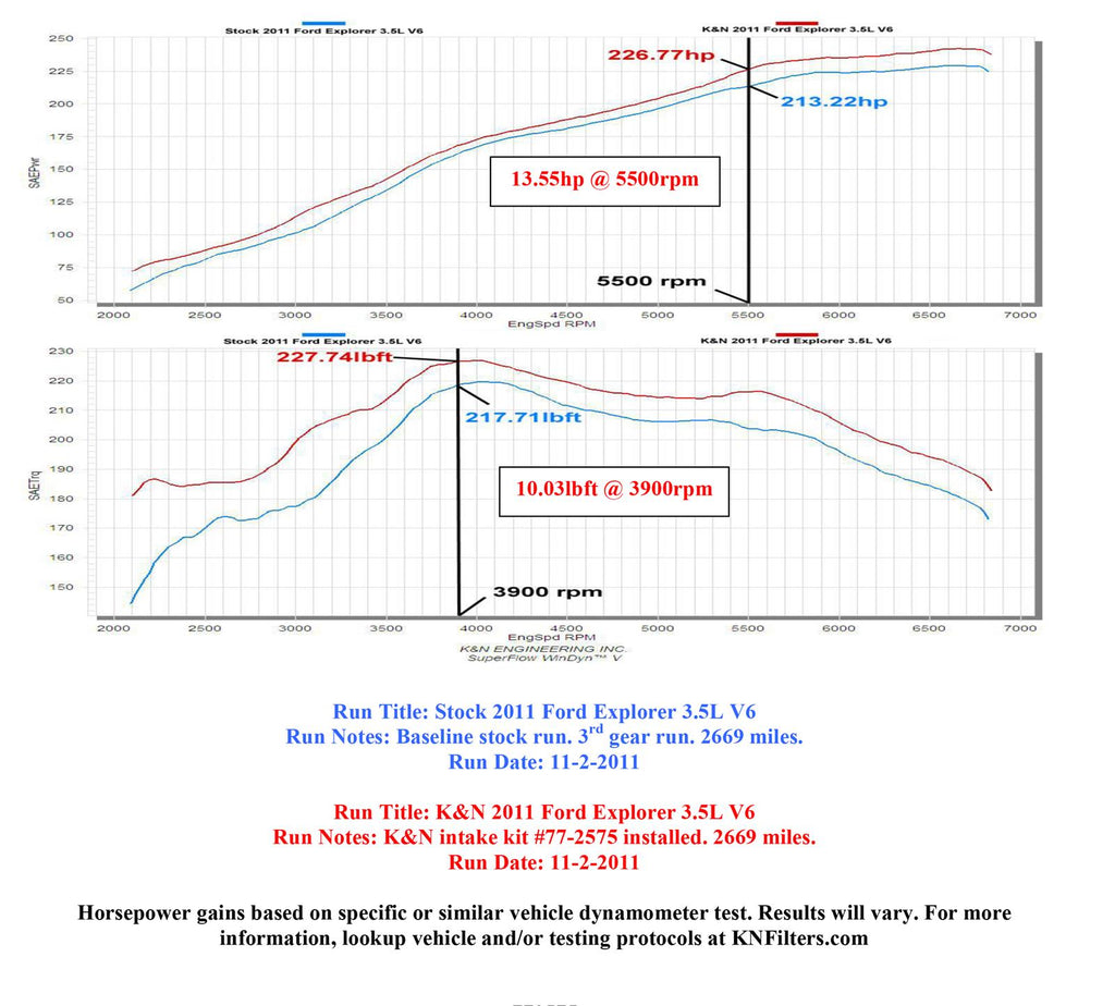 The K&N 77-2575KS high-flow performance air intake system is a free-flowing, mandrel-bent aluminum tube air induction system designed to fit some Ford Explorer models. The restrictive factory air filter and air intake housing on your vehicle are replaced by this K&N air intake system which is designed to dramatically reduce air flow restriction as it smoothes and straightens air flow. The improved air flow allows your engine to inhale a larger amount of air than it would from the stock air intake. More air means more usable power and acceleration throughout your engine’s RPM range. The 77-2575KS air intake comes with a chrome topped K&N high-flow air filter and a heat shield that installs into the previous air box space. Air is directed through the intake tube into the engine’s throttle body for a guaranteed power gain. The intake tube has an attractive silver powder-coat finish that's made to last and it accommodates the factory mass air sensor, crank case vent hose and a replacement silicone EVAP vent line. The tools needed for installation are a screwdriver, pliers, ratchet set and several wrenches. Some K&N 77 series air intakes are not legal for sale or use in California and other states adopting California emission standards while others are CARB exempt and 50 state legal. Check the K&N catalog or website for vehicle applications and specific CARB status for each vehicle and air intake.