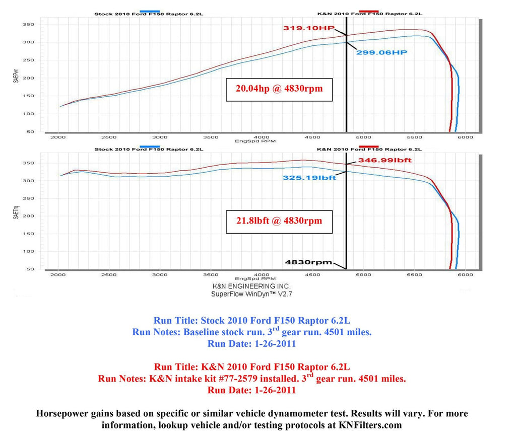 The K&N 77-2579KTK Air Intake fits some Ford F150 SVT Raptor models. See vehicle applications link for details.