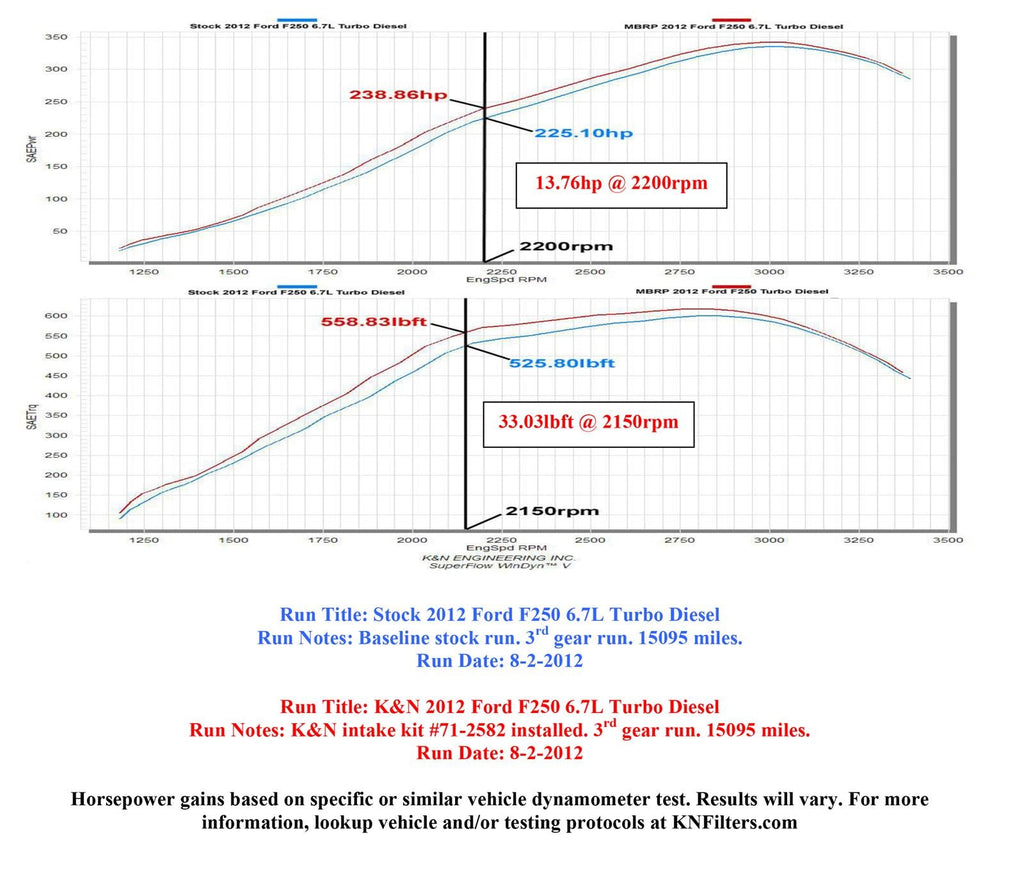 The K&N 71-2582 Air Intake fits some Ford F250 Super Duty, Ford F350 Super Duty, Ford F450, Ford F450 Super Duty, Ford F550, and Ford F550 Super Duty models. See vehicle applications link for details.