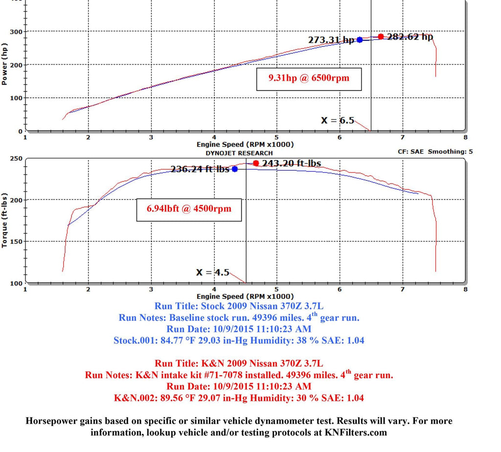 The K&N 71-7078 Air Intake fits some Infiniti G37, and Nissan 370Z models. See vehicle applications link for details.
