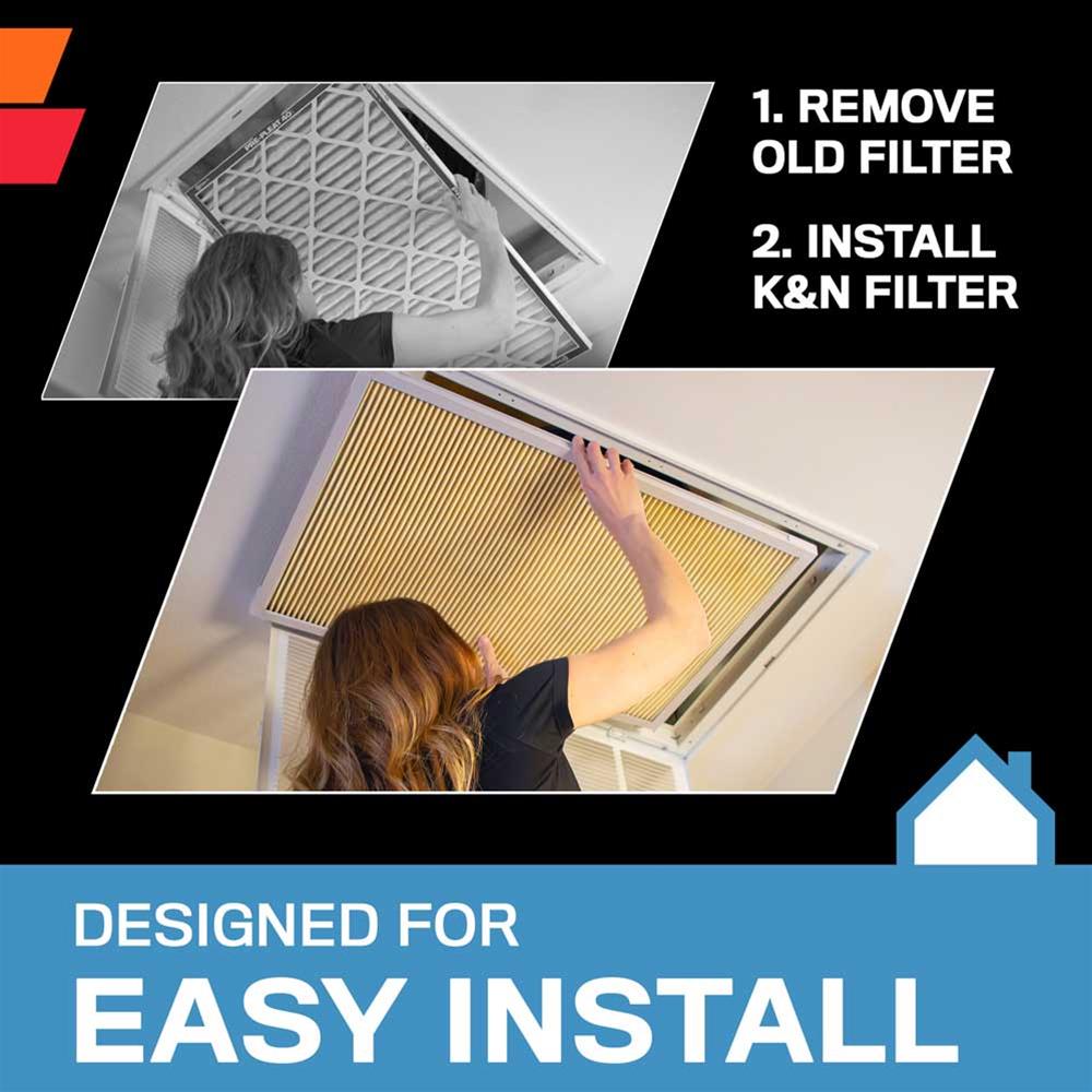 K&N washable home air filters are reusable HVAC-type filters, specially designed to reduce the contaminants in the air you breathe in your home, office, or business. Each air filter style features a pleated synthetic filter media to provide excellent filtration and dust holding capacity for long-lasting performance. Instead of repeatedly purchasing new disposable filters, simply wash and reinstall the K&N HVAC air filter whenever it is dirty. Order the washable HVAC air filter suited to your application.