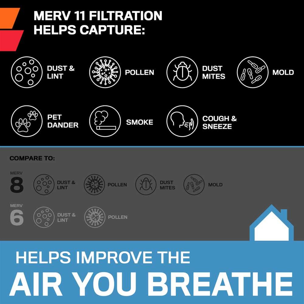 Notes: Filter minimum efficiency rating value (MERV) is 11.