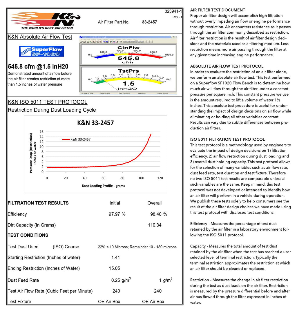 Product Line: K&N Washable Lifetime Performance Air Filters