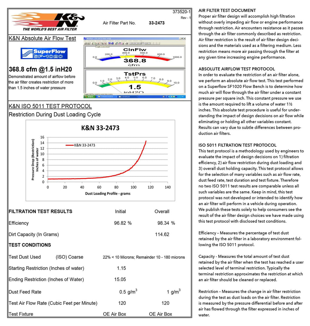 Product Line: K&N Washable Lifetime Performance Air Filters