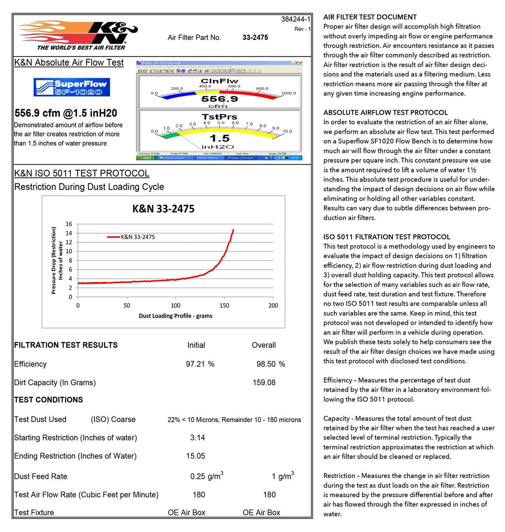 Product Line: K&N Washable Lifetime Performance Air Filters
