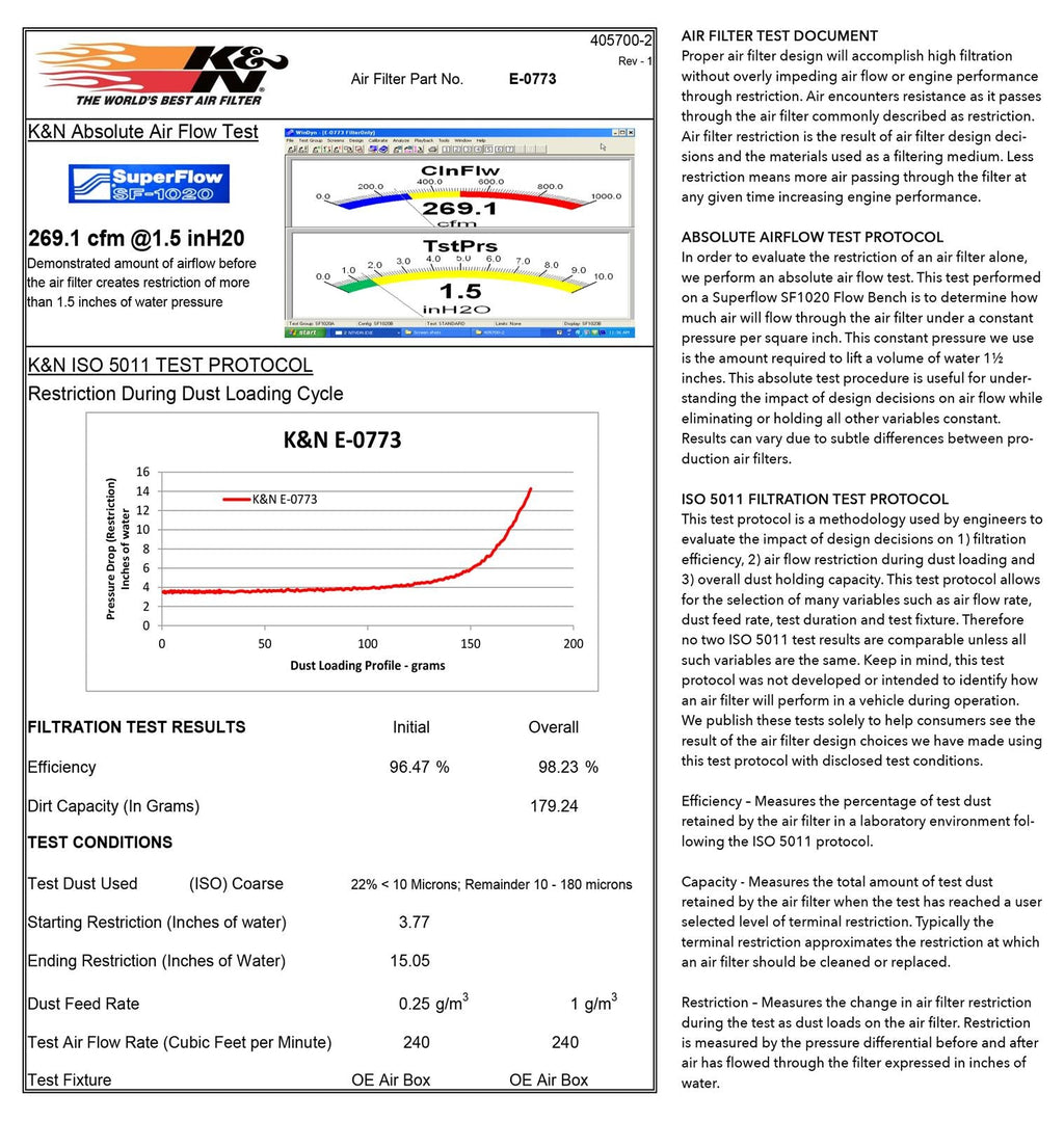 Product Line: K&N Washable Lifetime Performance Air Filters
