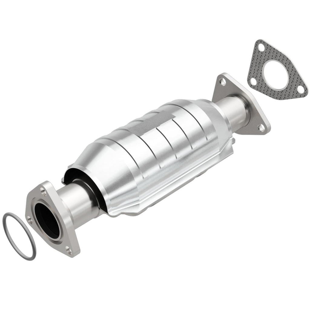 MagnaFlow direct-fit catalytic converters are designed for easy bolt-on installation for the professional installer. Welding, cutting, and tube-bending equipment are not required. These cats feature a ribbed body that minimizes expansion and distortion when the converters heat up. The ribs form a channel that protects the cushioning mat from direct exposure to exhaust gases, and they hold the ceramic catalyst in proper alignment. MagnaFlow converters use a monolithic honeycomb catalyst; the ceramic coating is designed for maximum flow and surface area, and the coating method is strictly controlled to maintain exact specifications. Improper coating could result in flow restrictions or an emissions test failure. These converters are designed to exact OE specifications and are available for the most popular vehicle makes and models.Brand: MagnaFlow