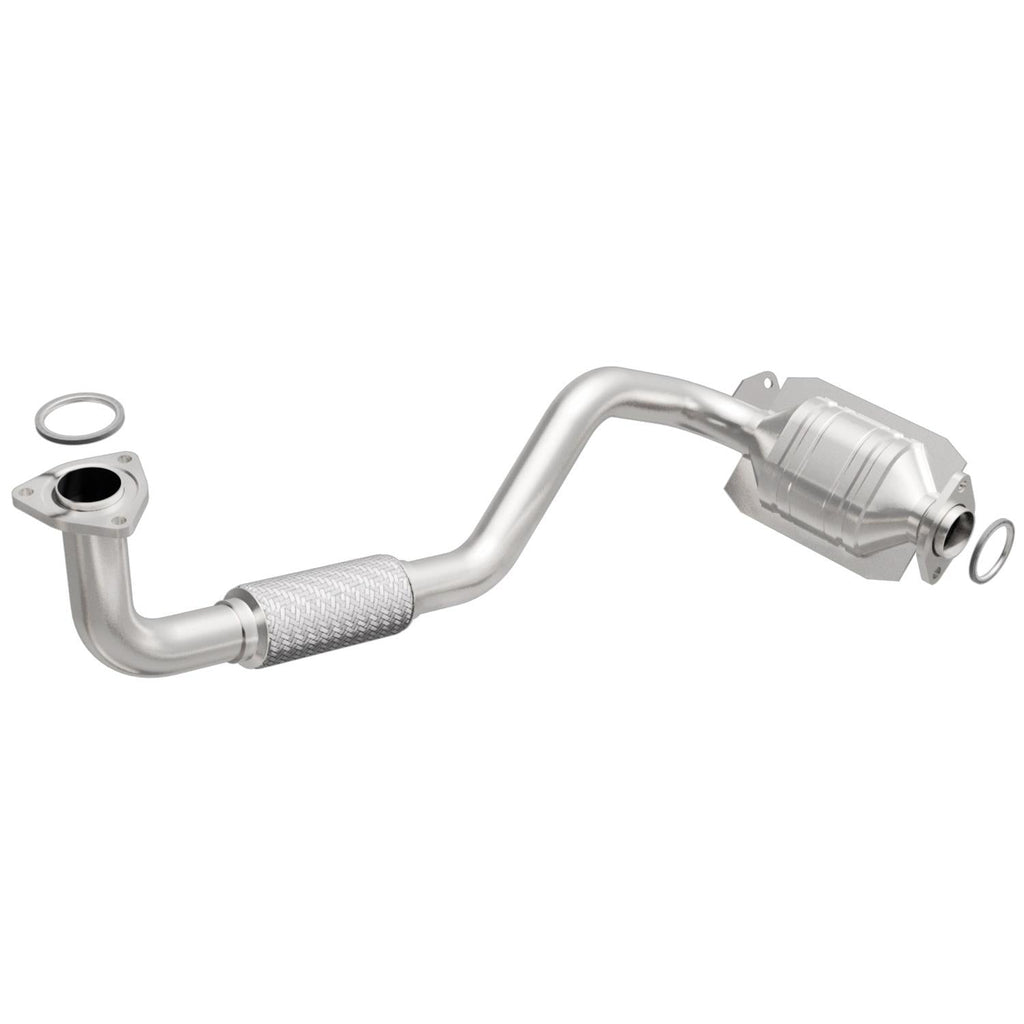 MagnaFlow direct-fit catalytic converters are designed for easy bolt-on installation for the professional installer. Welding, cutting, and tube-bending equipment are not required. These cats feature a ribbed body that minimizes expansion and distortion when the converters heat up. The ribs form a channel that protects the cushioning mat from direct exposure to exhaust gases, and they hold the ceramic catalyst in proper alignment. MagnaFlow converters use a monolithic honeycomb catalyst; the ceramic coating is designed for maximum flow and surface area, and the coating method is strictly controlled to maintain exact specifications. Improper coating could result in flow restrictions or an emissions test failure. These converters are designed to exact OE specifications and are available for the most popular vehicle makes and models.Brand: MagnaFlow