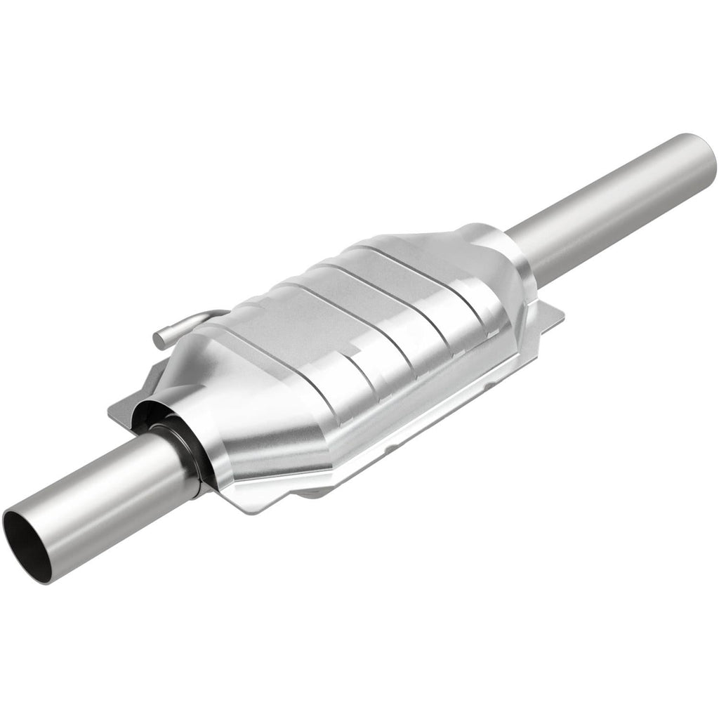 MagnaFlow direct-fit catalytic converters are designed for easy bolt-on installation for the professional installer. Welding, cutting, and tube-bending equipment are not required. These cats feature a ribbed body that minimizes expansion and distortion when the converters heat up. The ribs form a channel that protects the cushioning mat from direct exposure to exhaust gases, and they hold the ceramic catalyst in proper alignment. MagnaFlow converters use a monolithic honeycomb catalyst; the ceramic coating is designed for maximum flow and surface area, and the coating method is strictly controlled to maintain exact specifications. Improper coating could result in flow restrictions or an emissions test failure. These converters are designed to exact OE specifications and are available for the most popular vehicle makes and models.Brand: MagnaFlow