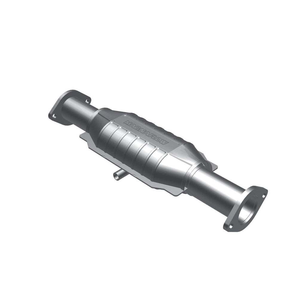 MagnaFlow direct-fit catalytic converters are designed for easy bolt-on installation for the professional installer. Welding, cutting, and tube-bending equipment are not required. These cats feature a ribbed body that minimizes expansion and distortion when the converters heat up. The ribs form a channel that protects the cushioning mat from direct exposure to exhaust gases, and they hold the ceramic catalyst in proper alignment. MagnaFlow converters use a monolithic honeycomb catalyst; the ceramic coating is designed for maximum flow and surface area, and the coating method is strictly controlled to maintain exact specifications. Improper coating could result in flow restrictions or an emissions test failure. These converters are designed to exact OE specifications and are available for the most popular vehicle makes and models.Brand: MagnaFlow