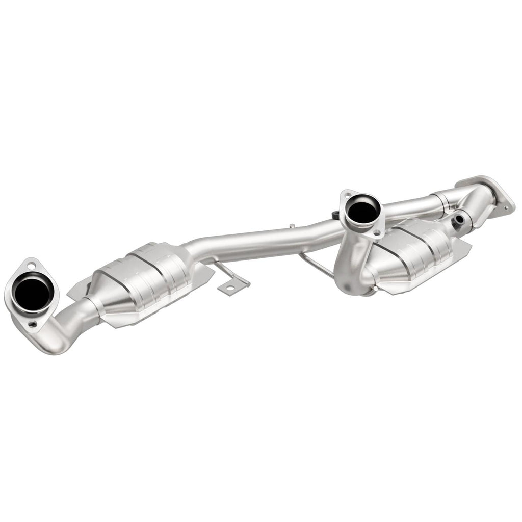 MagnaFlow direct-fit catalytic converters are designed for easy bolt-on installation for the professional installer. Welding, cutting, and tube-bending equipment are not required. These cats feature a ribbed body that minimizes expansion and distortion when the converters heat up. The ribs form a channel that protects the cushioning mat from direct exposure to exhaust gases, and they hold the ceramic catalyst in proper alignment. MagnaFlow converters use a monolithic honeycomb catalyst; the ceramic coating is designed for maximum flow and surface area, and the coating method is strictly controlled to maintain exact specifications. Improper coating could result in flow restrictions or an emissions test failure. These converters are designed to exact OE specifications and are available for the most popular vehicle makes and models.Brand: MagnaFlow