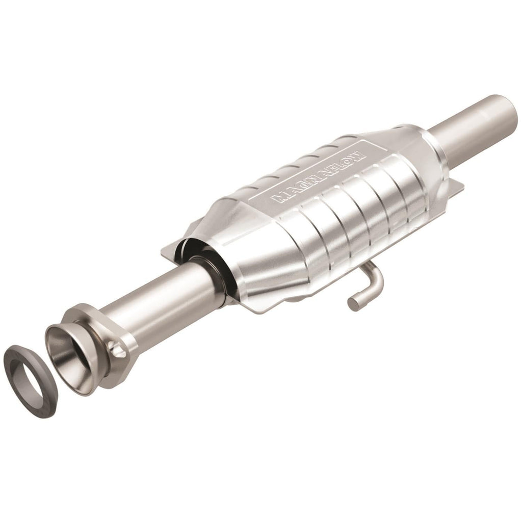MagnaFlow direct-fit catalytic converters are designed for easy bolt-on installation for the professional installer. Welding, cutting, and tube-bending equipment are not required. These cats feature a ribbed body that minimizes expansion and distortion when the converters heat up. The ribs form a channel that protects the cushioning mat from direct exposure to exhaust gases, and they hold the ceramic catalyst in proper alignment. MagnaFlow converters use a monolithic honeycomb catalyst; the ceramic coating is designed for maximum flow and surface area, and the coating method is strictly controlled to maintain exact specifications. Improper coating could result in flow restrictions or an emissions test failure. These converters are designed to exact OE specifications and are available for the most popular vehicle makes and models.Brand: MagnaFlow