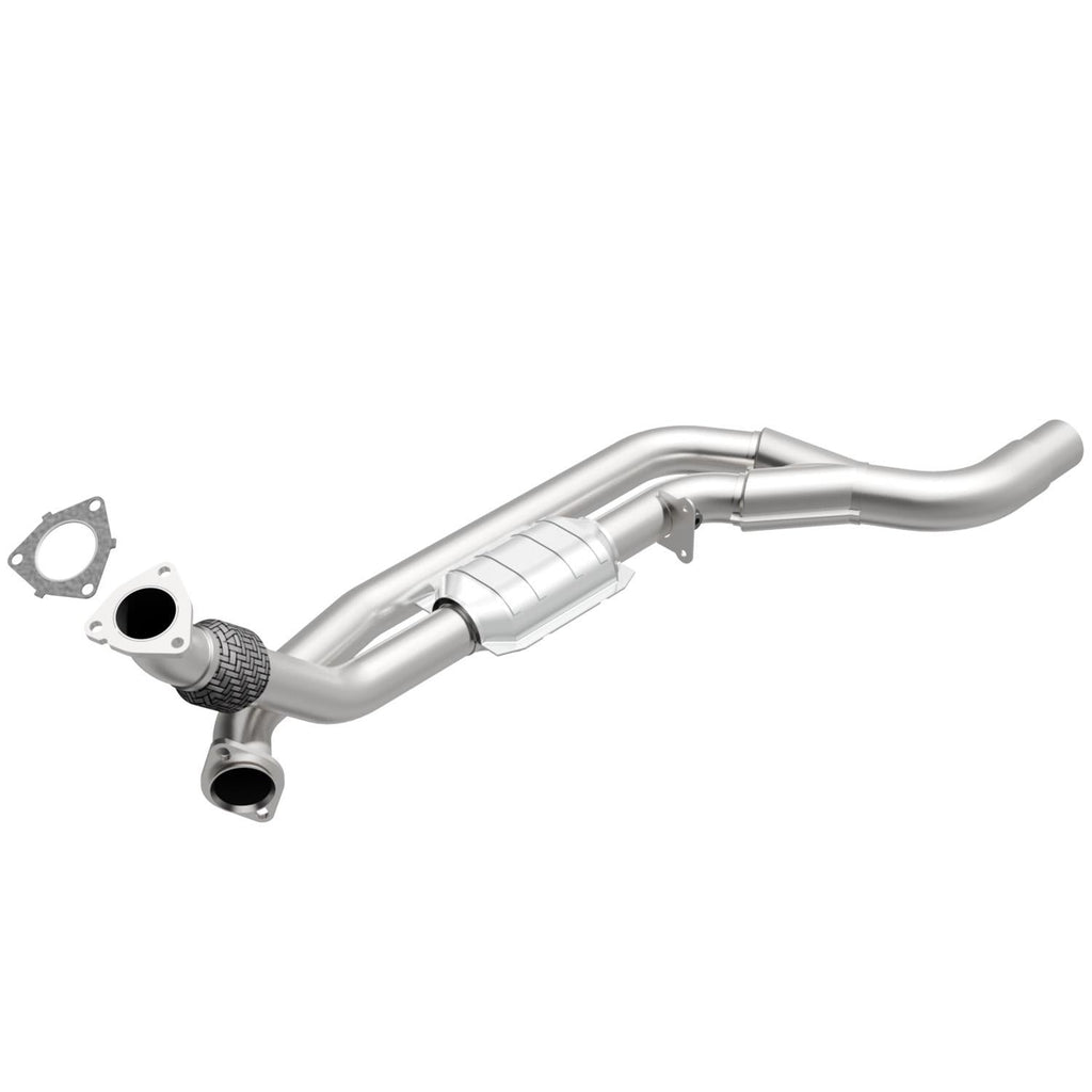 MagnaFlow direct-fit catalytic converters are designed for easy bolt-on installation for the professional installer. Welding, cutting, and tube-bending equipment are not required. These cats feature a ribbed body that minimizes expansion and distortion when the converters heat up. The ribs form a channel that protects the cushioning mat from direct exposure to exhaust gases, and they hold the ceramic catalyst in proper alignment. MagnaFlow converters use a monolithic honeycomb catalyst; the ceramic coating is designed for maximum flow and surface area, and the coating method is strictly controlled to maintain exact specifications. Improper coating could result in flow restrictions or an emissions test failure. These converters are designed to exact OE specifications and are available for the most popular vehicle makes and models.Brand: MagnaFlow