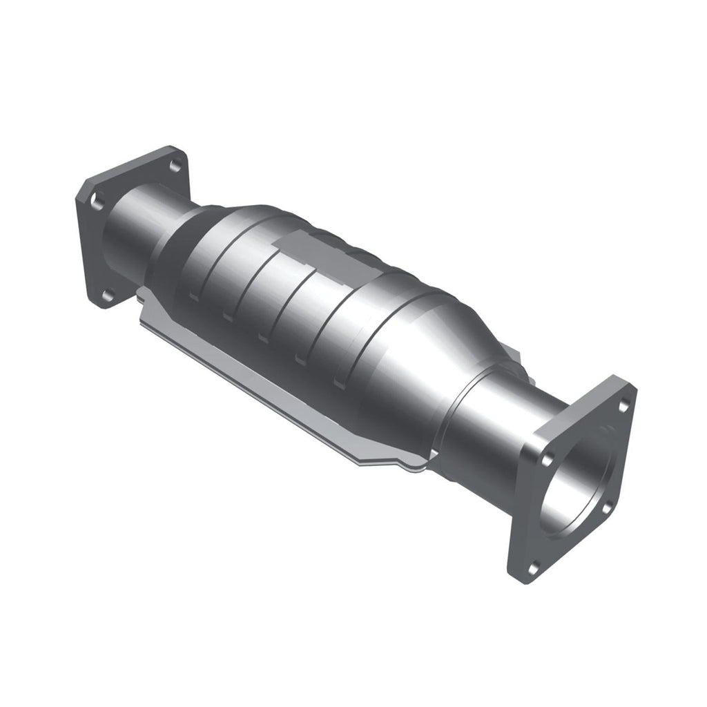 MagnaFlow direct-fit catalytic converters are designed for easy bolt-on installation for the professional installer. Welding, cutting, and tube-bending equipment are not required. These cats feature a ribbed body that minimizes expansion and distortion when the converters heat up. The ribs form a channel that protects the cushioning mat from direct exposure to exhaust gases, and they hold the ceramic catalyst in proper alignment. MagnaFlow converters use a monolithic honeycomb catalyst; the ceramic coating is designed for maximum flow and surface area, and the coating method is strictly controlled to maintain exact specifications. Improper coating could result in flow restrictions or an emissions test failure. These converters are designed to exact OE specifications and are available for the most popular vehicle makes and models.Brand: MagnaFlow