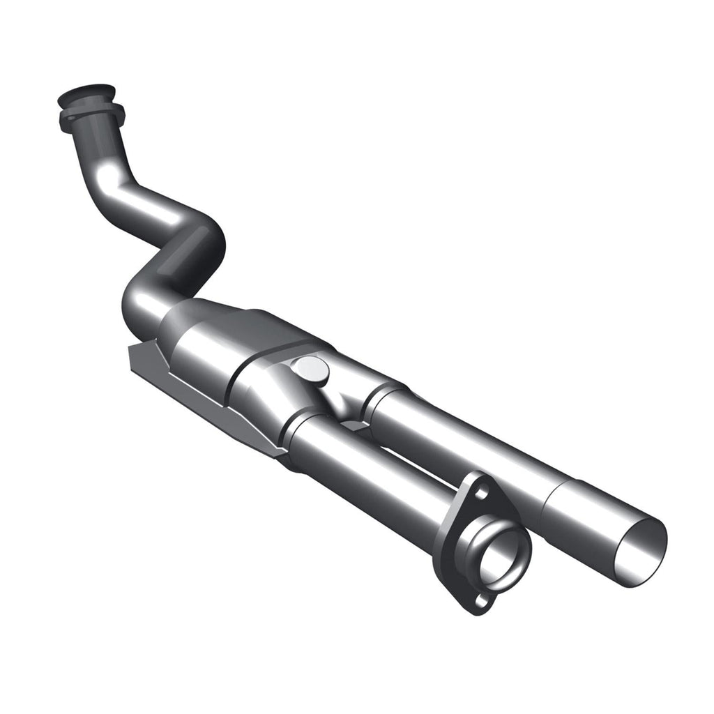 MagnaFlow direct-fit catalytic converters are designed for easy bolt-on installation for the professional installer. Welding, cutting, and tube-bending equipment are not required. These cats feature a ribbed body that minimizes expansion and distortion when the converters heat up. The ribs form a channel that protects the cushioning mat from direct exposure to exhaust gases, and they hold the ceramic catalyst in proper alignment. MagnaFlow converters use a monolithic honeycomb catalyst; the ceramic coating is designed for maximum flow and surface area, and the coating method is strictly controlled to maintain exact specifications. Improper coating could result in flow restrictions or an emissions test failure. These converters are designed to exact OE specifications and are available for the most popular vehicle makes and models.Brand: MagnaFlow