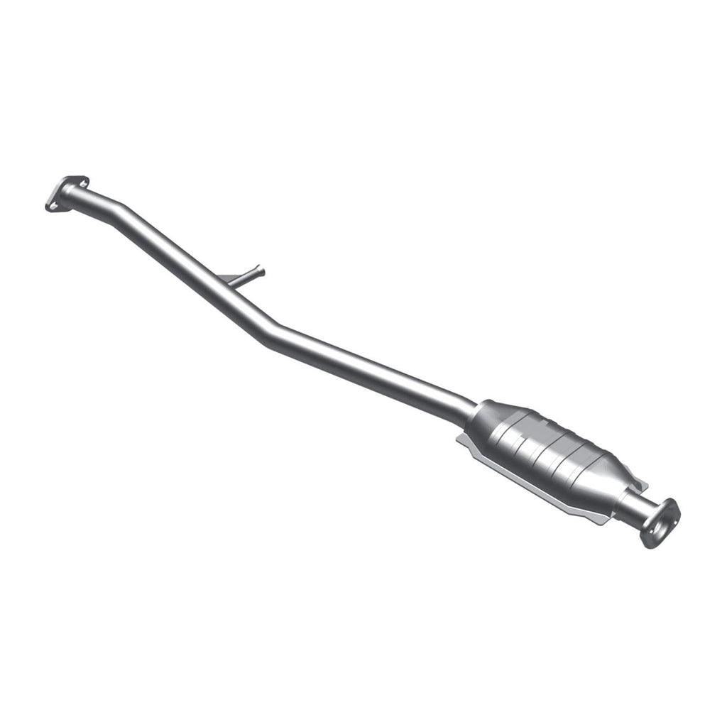 MagnaFlow direct-fit catalytic converters are designed for easy bolt-on installation for the professional installer. Welding, cutting, and tube-bending equipment are not required. These cats feature a ribbed body that minimizes expansion and distortion when the converters heat up. The ribs form a channel that protects the cushioning mat from direct exposure to exhaust gases, and they hold the ceramic catalyst in proper alignment. MagnaFlow converters use a monolithic honeycomb catalyst; the ceramic coating is designed for maximum flow and surface area, and the coating method is strictly controlled to maintain exact specifications. Improper coating could result in flow restrictions or an emissions test failure. These converters are designed to exact OE specifications and are available for the most popular vehicle makes and models.Brand: MagnaFlow