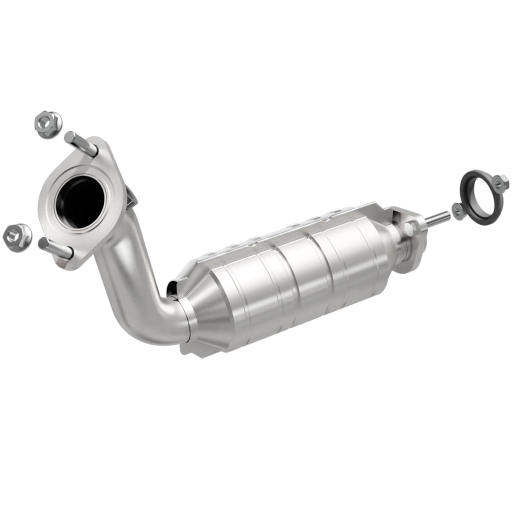 MagnaFlow direct-fit catalytic converters are designed for easy bolt-on installation for the professional installer. Welding, cutting, and tube-bending equipment are not required. These cats feature a ribbed body that minimizes expansion and distortion when the converters heat up. The ribs form a channel that protects the cushioning mat from direct exposure to exhaust gases, and they hold the ceramic catalyst in proper alignment. MagnaFlow converters use a monolithic honeycomb catalyst; the ceramic coating is designed for maximum flow and surface area, and the coating method is strictly controlled to maintain exact specifications. Improper coating could result in flow restrictions or an emissions test failure. These converters are designed to exact OE specifications and are available for the most popular vehicle makes and models.Brand: MagnaFlow