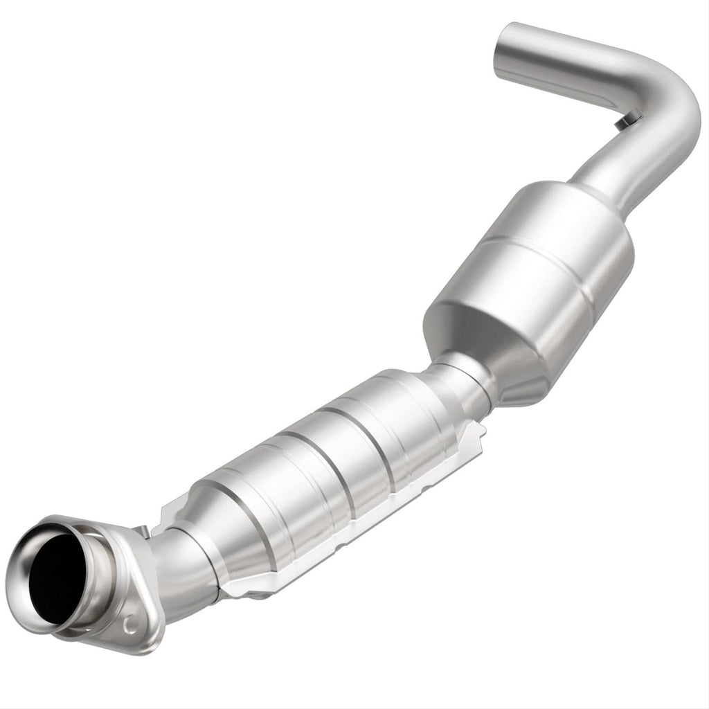 MagnaFlow direct-fit catalytic converters are designed for easy bolt-on installation for the professional installer. Welding, cutting, and tube-bending equipment are not required. These cats feature a ribbed body that minimizes expansion and distortion when the converters heat up. The ribs form a channel that protects the cushioning mat from direct exposure to exhaust gases, and they hold the ceramic catalyst in proper alignment. MagnaFlow converters use a monolithic honeycomb catalyst; the ceramic coating is designed for maximum flow and surface area, and the coating method is strictly controlled to maintain exact specifications. Improper coating could result in flow restrictions or an emissions test failure. These converters are designed to exact OE specifications and are available for the most popular vehicle makes and models.Brand: MagnaFlow