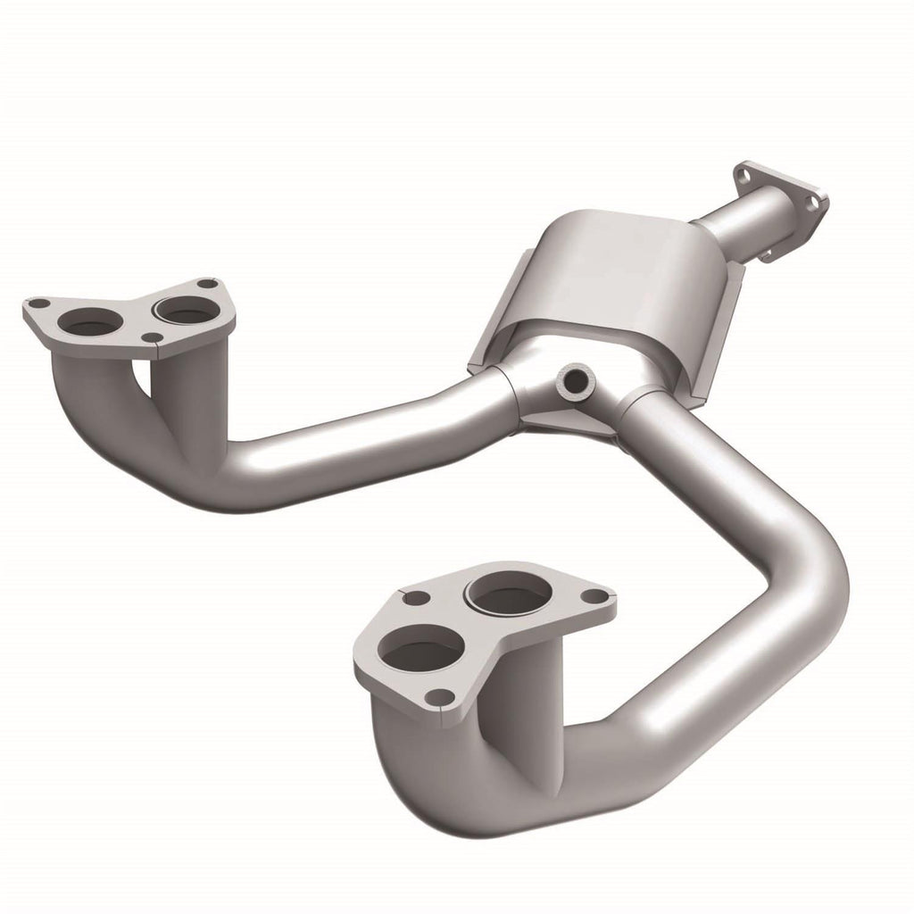 MagnaFlow direct-fit catalytic converters are designed for easy bolt-on installation for the professional installer. Welding, cutting, and tube-bending equipment are not required. These cats feature a ribbed body that minimizes expansion and distortion when the converters heat up. The ribs form a channel that protects the cushioning mat from direct exposure to exhaust gases, and they hold the ceramic catalyst in proper alignment. MagnaFlow converters use a monolithic honeycomb catalyst; the ceramic coating is designed for maximum flow and surface area, and the coating method is strictly controlled to maintain exact specifications. Improper coating could result in flow restrictions or an emissions test failure. These converters are designed to exact OE specifications and are available for the most popular vehicle makes and models.Brand: MagnaFlow