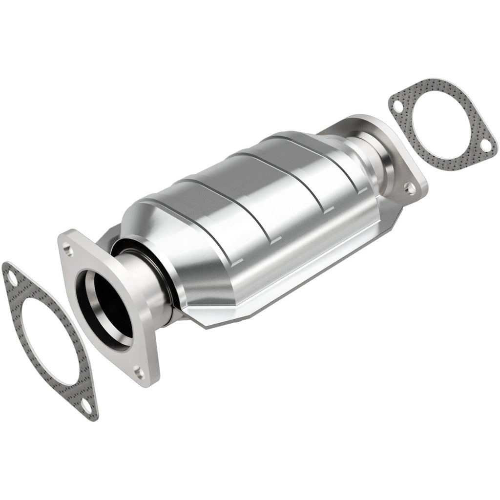 MagnaFlow direct-fit catalytic converters are designed for easy bolt-on installation for the professional installer. Welding, cutting, and tube-bending equipment are not required. These cats feature a ribbed body that minimizes expansion and distortion when the converters heat up. The ribs form a channel that protects the cushioning mat from direct exposure to exhaust gases, and they hold the ceramic catalyst in proper alignment. MagnaFlow converters use a monolithic honeycomb catalyst; the ceramic coating is designed for maximum flow and surface area, and the coating method is strictly controlled to maintain exact specifications. Improper coating could result in flow restrictions or an emissions test failure. These converters are designed to exact OE specifications and are available for the most popular vehicle makes and models.Brand: MagnaFlow