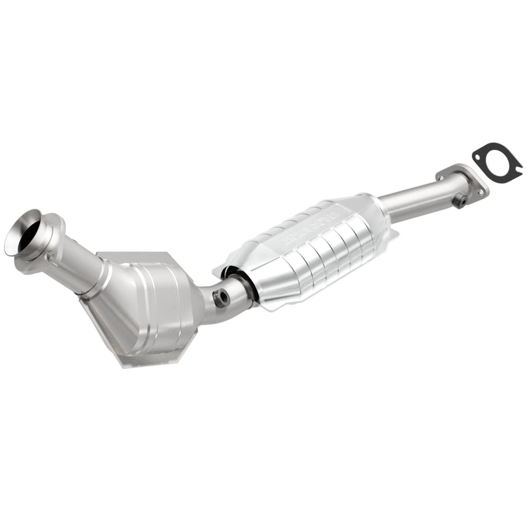 MagnaFlow direct-fit catalytic converters are designed for easy bolt-on installation for the professional installer. Welding, cutting, and tube-bending equipment are not required. These cats feature a ribbed body that minimizes expansion and distortion when the converters heat up. The ribs form a channel that protects the cushioning mat from direct exposure to exhaust gases, and they hold the ceramic catalyst in proper alignment. MagnaFlow converters use a monolithic honeycomb catalyst; the ceramic coating is designed for maximum flow and surface area, and the coating method is strictly controlled to maintain exact specifications. Improper coating could result in flow restrictions or an emissions test failure. These converters are designed to exact OE specifications and are available for the most popular vehicle makes and models.Brand: MagnaFlow