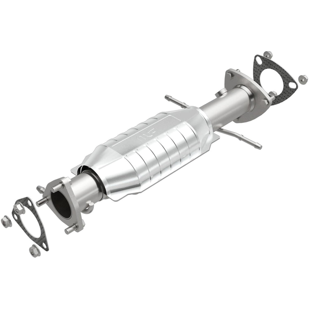 MagnaFlow direct-fit catalytic converters are designed for easy bolt-on installation for the professional installer. Welding, cutting, and tube-bending equipment are not required. These cats feature a ribbed body that minimizes expansion and distortion when the converters heat up. The ribs form a channel that protects the cushioning mat from direct exposure to exhaust gases, and they hold the ceramic catalyst in proper alignment. MagnaFlow converters use a monolithic honeycomb catalyst; the ceramic coating is designed for maximum flow and surface area, and the coating method is strictly controlled to maintain exact specifications. Improper coating could result in flow restrictions or an emissions test failure. These converters are designed to exact OE specifications and are available for the most popular vehicle makes and models.Brand: MagnaFlow