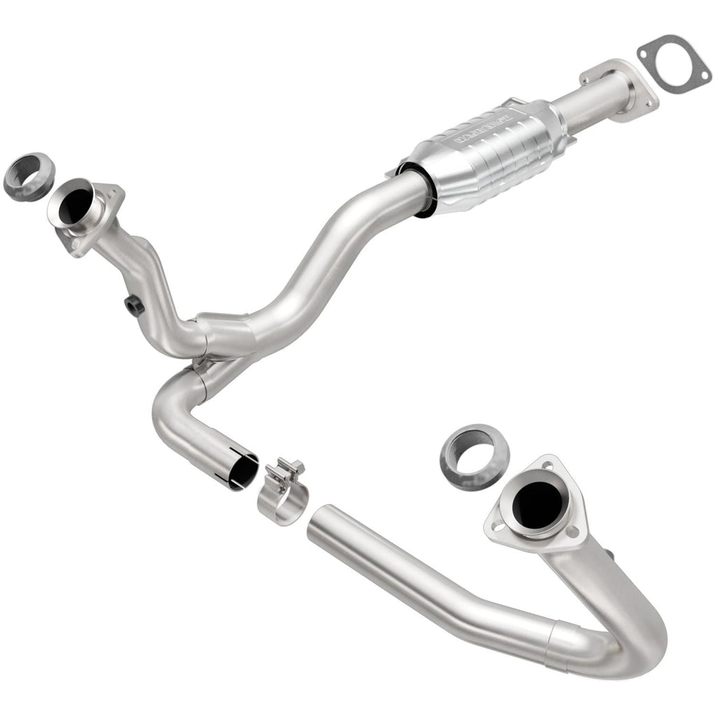 MagnaFlow direct-fit catalytic converters are designed for easy bolt-on installation for the professional installer. Welding, cutting, and tube-bending equipment are not required. These cats feature a ribbed body that minimizes expansion and distortion when the converters heat up. The ribs form a channel that protects the cushioning mat from direct exposure to exhaust gases, and they hold the ceramic catalyst in proper alignment. MagnaFlow converters use a monolithic honeycomb catalyst; the ceramic coating is designed for maximum flow and surface area, and the coating method is strictly controlled to maintain exact specifications. Improper coating could result in flow restrictions or an emissions test failure. These converters are designed to exact OE specifications and are available for the most popular vehicle makes and models.Brand: MagnaFlow