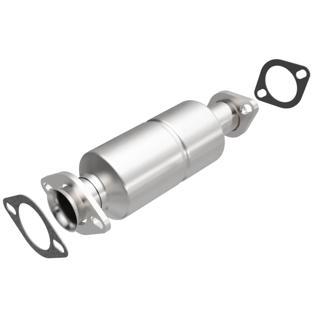 MagnaFlow direct-fit catalytic converters are designed for easy bolt-on installation for the professional installer. Welding, cutting, and tube-bending equipment are not required. These cats feature a ribbed body that minimizes expansion and distortion when the converters heat up. The ribs form a channel that protects the cushioning mat from direct exposure to exhaust gases, and they hold the ceramic catalyst in proper alignment. MagnaFlow converters use a monolithic honeycomb catalyst; the ceramic coating is designed for maximum flow and surface area, and the coating method is strictly controlled to maintain exact specifications. Improper coating could result in flow restrictions or an emissions test failure. These converters are designed to exact OE specifications and are available for the most popular vehicle makes and models.Brand: MagnaFlow