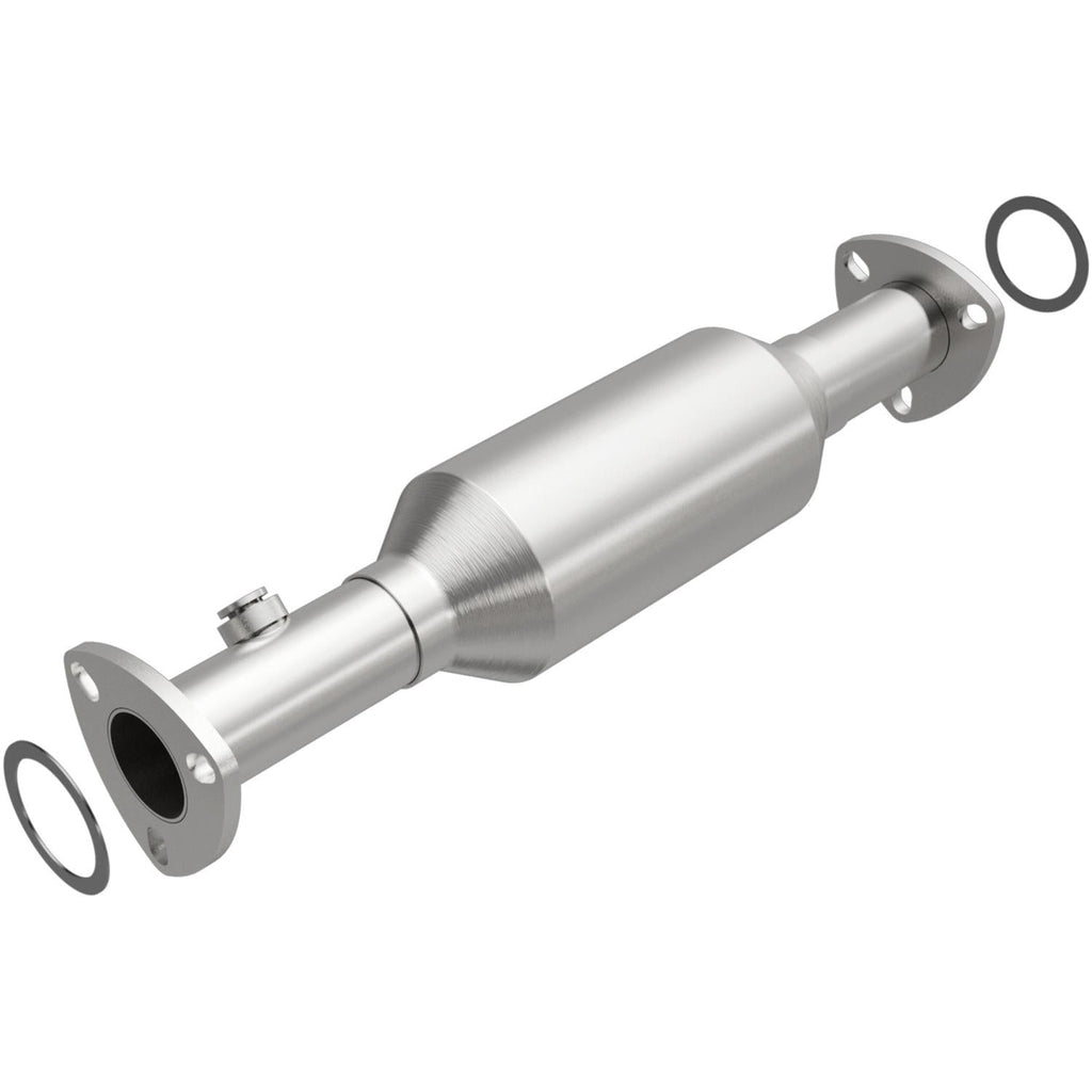 MagnaFlow direct-fit catalytic converters are designed for easy bolt-on installation for the professional installer. Welding, cutting, and tube-bending equipment are not required. These cats feature a ribbed body that minimizes expansion and distortion when the converters heat up. The ribs form a channel that protects the cushioning mat from direct exposure to exhaust gases, and they hold the ceramic catalyst in proper alignment. MagnaFlow converters use a monolithic honeycomb catalyst; the ceramic coating is designed for maximum flow and surface area, and the coating method is strictly controlled to maintain exact specifications. Improper coating could result in flow restrictions or an emissions test failure. These converters are designed to exact OE specifications and are available for the most popular vehicle makes and models.Brand: MagnaFlow