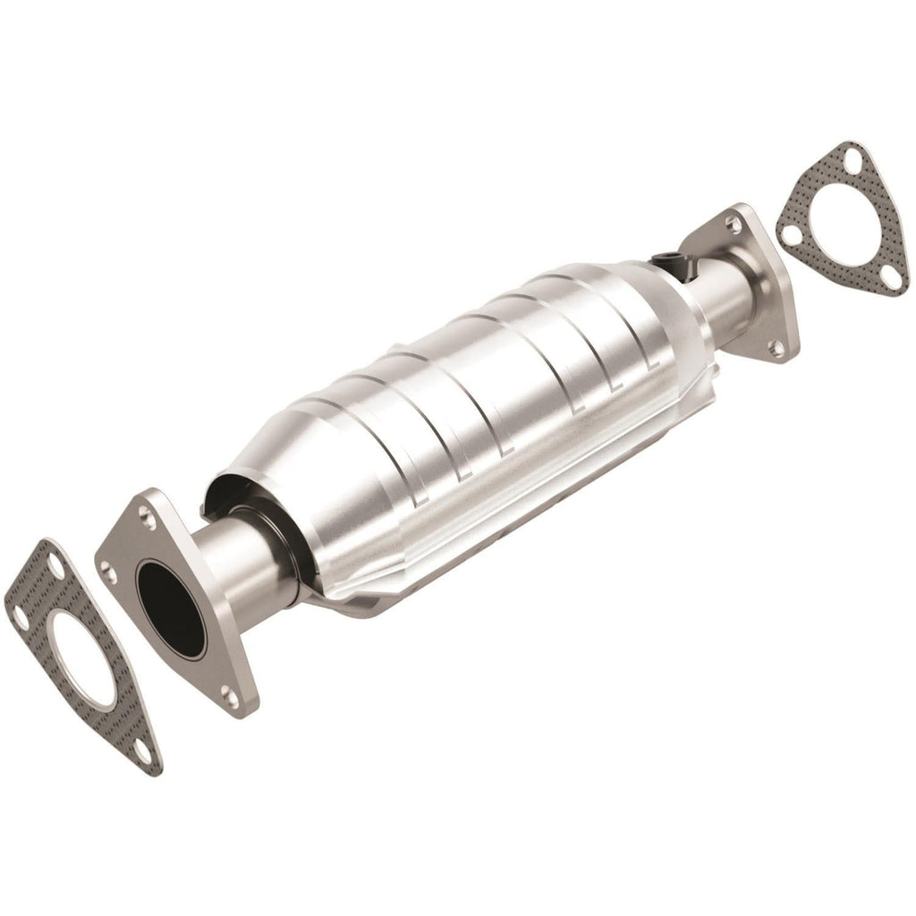 MagnaFlow direct-fit catalytic converters are designed for easy bolt-on installation for the professional installer. Welding, cutting, and tube-bending equipment are not required. These cats feature a ribbed body that minimizes expansion and distortion when the converters heat up. The ribs form a channel that protects the cushioning mat from direct exposure to exhaust gases, and they hold the ceramic catalyst in proper alignment. MagnaFlow converters use a monolithic honeycomb catalyst; the ceramic coating is designed for maximum flow and surface area, and the coating method is strictly controlled to maintain exact specifications. Improper coating could result in flow restrictions or an emissions test failure. These converters are designed to exact OE specifications and are available for the most popular vehicle makes and models.Brand: MagnaFlow